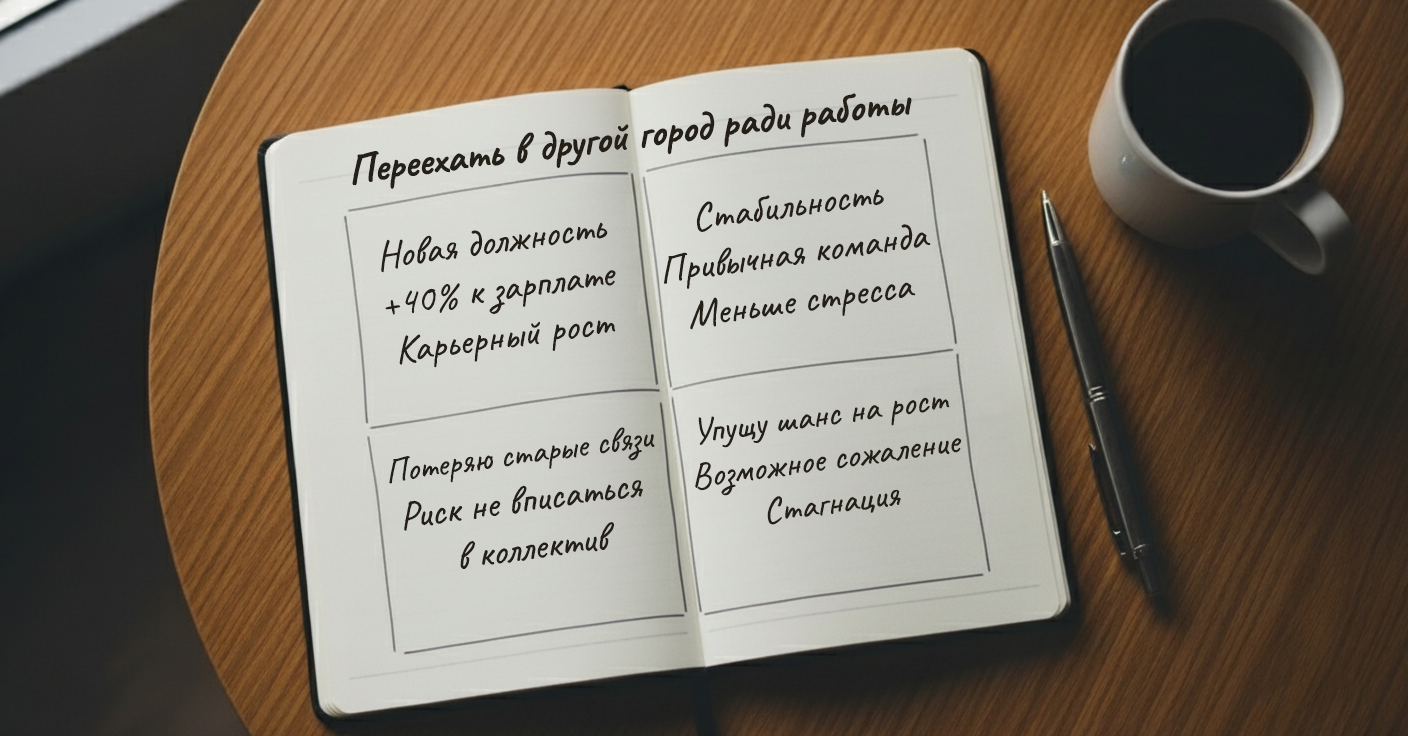 Анна сомневается: карьерный рост против стабильности. Давайте разложим решение квадратом Декарта.
