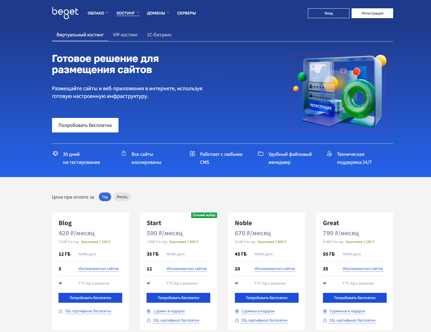 - Blog - 520 руб./мес. - 12 ГБ NVMe, 5 сайтов