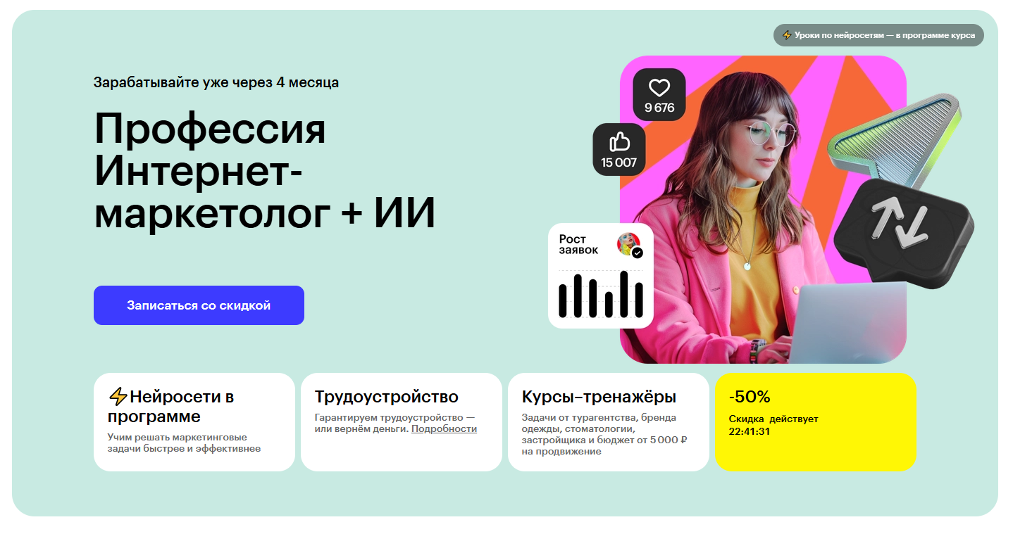 Профессия интернет-маркетолога входит в ТОП-10 самых востребованных в 2025 году. Компании активно ищут специалистов, которые умеют привлекать клиентов через интернет. Зарплаты растут, а спрос превышает предложение.