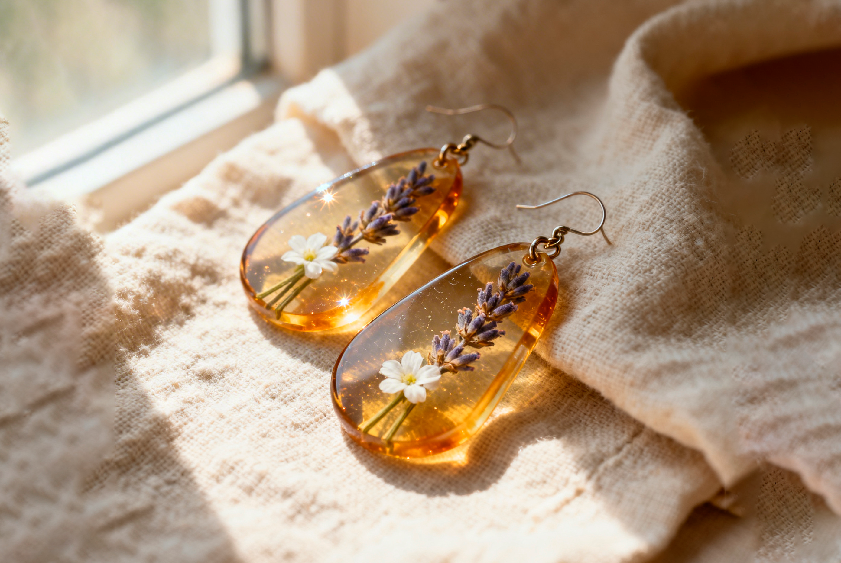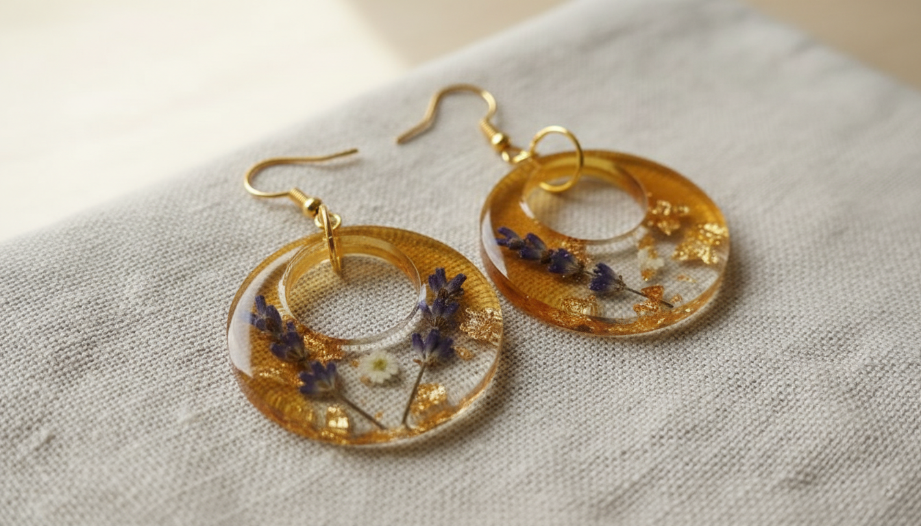 Украшения с сухоцветами и натуральными включениями. Серьги и подвески с лавандой, гортензиями, полевыми цветами внутри смолы - один из самых стабильных трендов. Покупатель воспринимает их как личный и тёплый подарок.