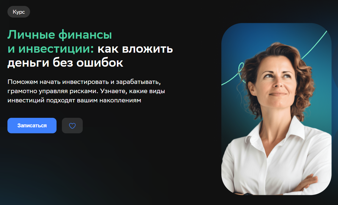 Компактный курс для быстрого старта. Программа фокусируется на управлении личными финансами и создании первого портфеля.